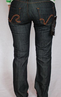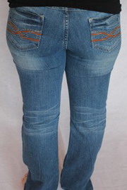 Should you wish to draw attention, highlight and accentuate your bottom and thighs, wear jeans with bold details (buttons, stitching, diamantes, fading, etc) on the back pockets.